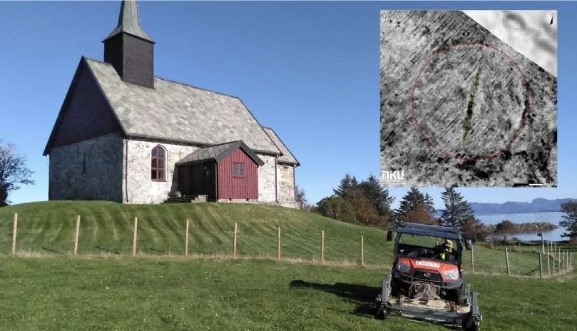 在耶勒斯塔德维京船(Gjellerstad Viking ship)重大发现仅一年后,挪威文化遗产研究所(NIKU)的考古学家又有了惊人新发现。通过开展大范围考古勘察,并使用 Guideline Geo 公司先进的 MALA MIRA 成像雷达阵列技术,考古团队在挪威埃多伊地区(Edøy)发现了另一艘维京船只。与耶勒斯塔德维京船类似,这艘埃多伊维京船也位于地表正下方,埋藏在一处旧时古坟堆的遗迹中。从雷达探测数据中,能清晰看到一条长 13m的船龙骨轮廓;据初步估算,整艘船的长度约为 16~17m。