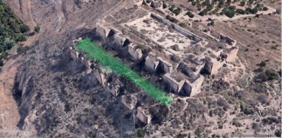 为探测蒙特阿古多城堡(位于安达卢西亚地区)范围内潜在的考古遗迹,工作人员高效开展了探地雷达探测工作。此次探测发现的目标物,主要与该城堡历史上的原有建筑结构相关。探测区域位于城堡主体建筑外的一处高原上。该区域土壤结构自上而下为:不同厚度的人为填充层,其下方是起伏分布的石英岩与盐岩。高原上的探测范围面积为 7m×50m。