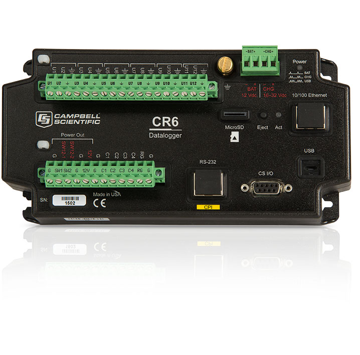 CR6系列数据采集器功能强大,可作为数据采集系统的核心组分。CR6集成了我们之前数据来集器的所有优点,并增加了快速通讯接口,低功耗,内置USB,便携,更高的模拟输入精度和分辨率。CR6系列数据采集器引入了新的通用接口(U)概念: