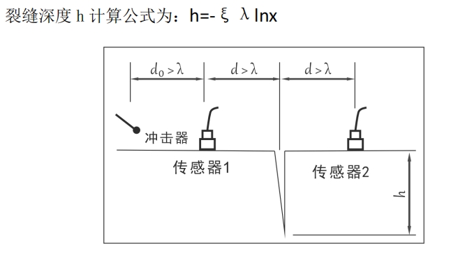 弹性波信号在混凝土中传播时,当遇到裂缝时会在裂缝端点处产生衍射,衍射角与裂缝深度之间存在一定的几何关系。具体来说,当激发的弹性波信号在混凝土内传播,穿过裂缝时,在裂缝端点处产生衍射,其衍射角与裂缝深度具有一定的几何关系。相位反转法正是根据这种几何关系来测试裂缝深度。