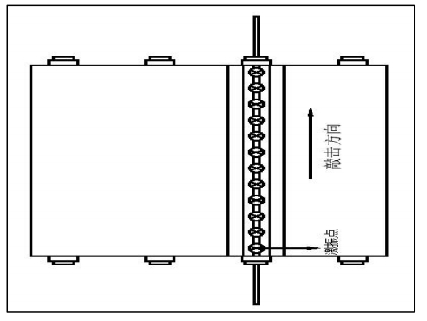 面波法测试混凝土内部裂缝深度,在测试过程中采用“一发双收”测试方式。接收点跨裂缝等距离布置,冲击点与通道一传感器同侧。如图3-2所示;冲击产生的面波传递至裂缝另一侧传感时,通过对比传感器1和传感器2得到面波的最大振幅,进而得到被测裂缝深度。该方法测试范围大,受充填物、钢筋、水分的影响小。