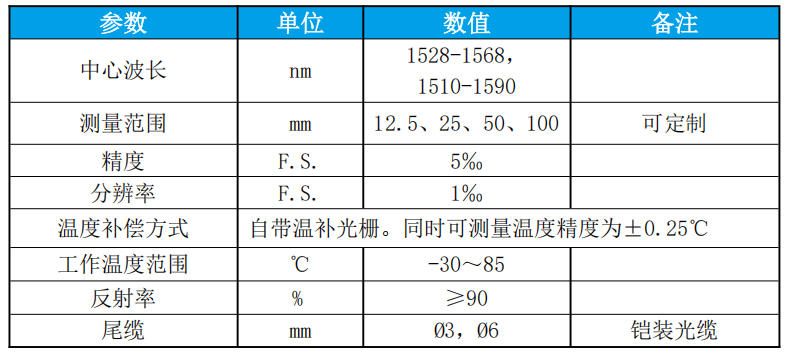 表 1 光纤光栅埋入式测缝计主要性能参数