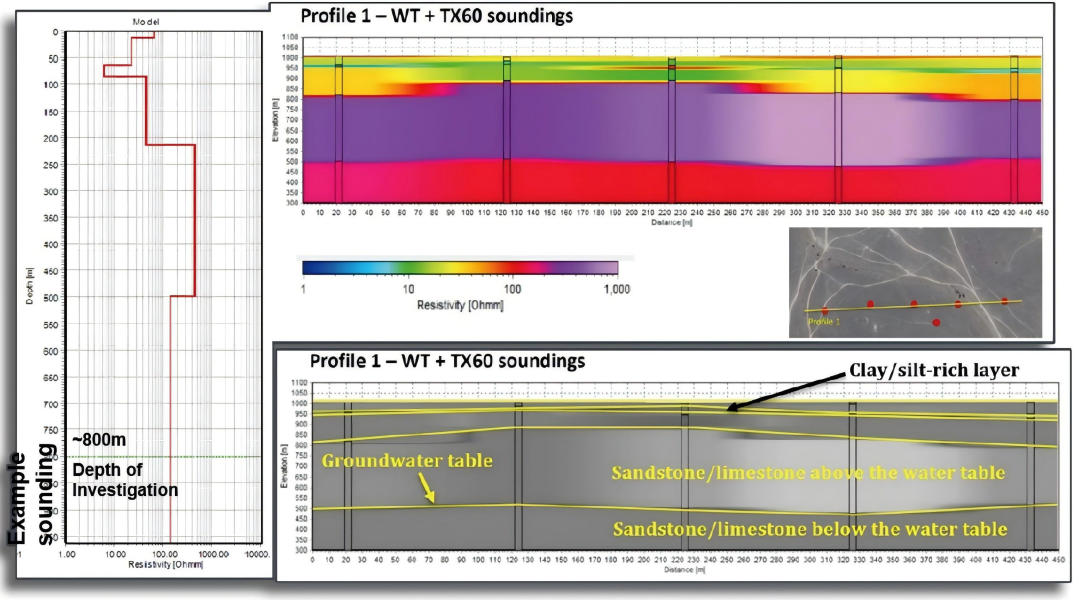 目标:进行大间距测深,以确定含水层的大致位置和质量。