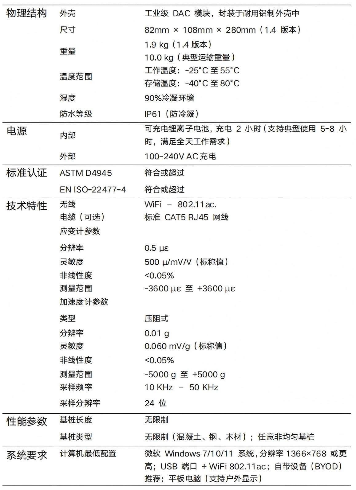 用 途:只需连接两个组合传感器(双用途),即可在基桩打入地下过程中对其进行动态检测。悬挂于基桩上的主单元通过无损无线传输数据,大幅提升外业工作效率并简化操作流程。