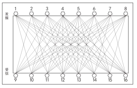 采用弹性波CT法,该方法以冲击弹性波作为媒介,以波速和信号幅值作为计算依据,通过交叉测线对被检对象进行全方位扫描,通过对采集数据的反演、重建得到能真实反映其结构内部情况的结构质量分布图像,以达到检测结构物内质量的目的。
