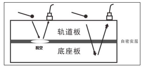 通过冲击方式产生瞬态冲击弹性波并接收信号,通过分析冲击弹性波的波速、波形和频率等参数的变化,判断自密实混凝土层是否存在脱空。当被测对象存在脱空时,冲击弹性波信号会产生反射,通过对提取信号的分析及结合平面成像技术可描绘脱空的形态和空间位置。