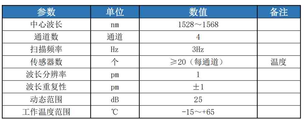 解调波长范围:1528-1568nm,覆盖广泛的光纤光栅传感器工作波段。