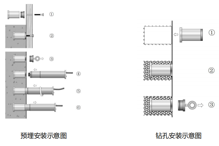 预埋及钻孔安装示意图。