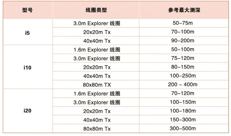 双磁 矩1A/5A(i5) 1A/10A(i10) 1A/20A(i20) 7 μs(低矩) 13 μs(高矩) 20x20m(2.5mm?单匝) 40x40m(4.0mm?单匝) 80x80m(6.0mm?单匝) Explorer线圈-Tx (3x3m,2匝或1.6x1.6m,2匝) 输出电流