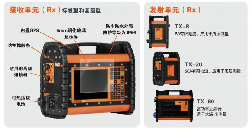 WaIKTEM2是由接收单元(RX)、发射单元(TX)、接收器线圈(RC)和发射机回路(TL)组成,根据用户不同需求,提供灵活的配置。
